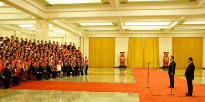 9月21日,中央企業(yè)先進(jìn)集體和勞動(dòng)模范表彰大會(huì)在人民大會(huì)堂舉行,國(guó)務(wù)委員王勇出席大會(huì)并會(huì)見先進(jìn)集體和勞動(dòng)模范代表。國(guó)資委黨委書記、主任郝鵬出席大會(huì)并講話。機(jī)械科學(xué)研究總院集團(tuán)黨委書記、董事長(zhǎng)王德成同志和工會(huì)主席、黨群工作部部長(zhǎng)楊玉亭同志應(yīng)邀出席會(huì)議。