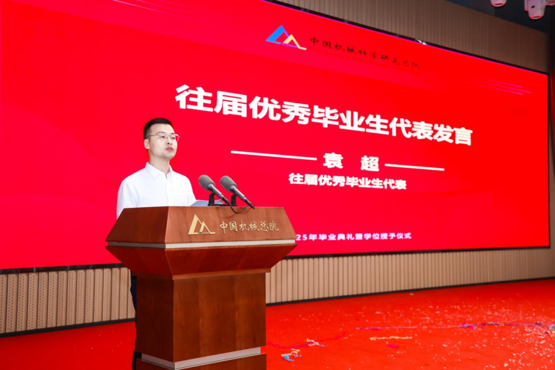往屆優(yōu)秀畢業(yè)生代表袁超分享留院工作以來的科研經(jīng)歷與成長,鼓勵學弟學妹們“以‘敢為人先’為刃,在工業(yè)母機、工業(yè)軟件的賽道上破浪前行;以‘開拓創(chuàng)新’為炬,為中國制造業(yè)的高質(zhì)量發(fā)展點燃燎原星火。”